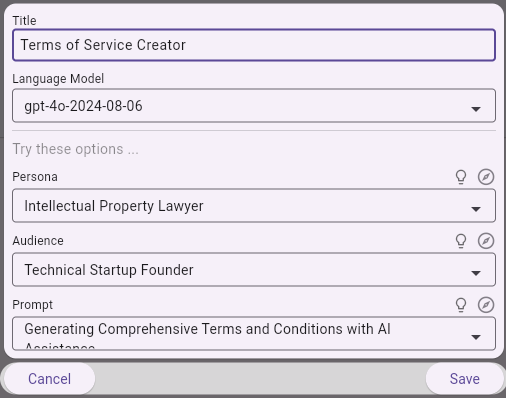 - Product Terms of Service: This illustrates how “The Playground” can be tailored to a specific legal context, generating terms of service for a startup founder.