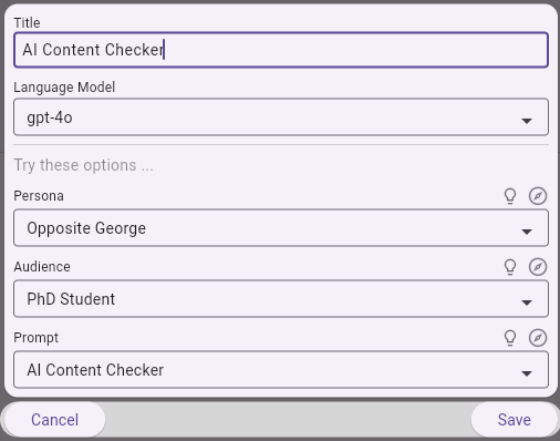 - Definition: The Playground allows users to engage with AI through pre-configured personas, audiences, and prompts without the complexity of creating the underlying mappings to LLMs.